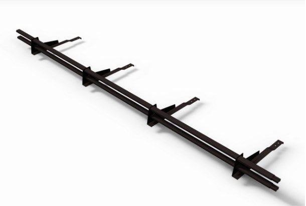 Комплектация: 2 плоско-овальные оцинкованные трубы длиной 3 м, сечением 25*45 мм и толщиной стенки 1 мм, 4 оцинкованных кронштейна кронштейна толщиной 2 мм, весь необходимый для установки крепеж, инструкция по монтажу.
